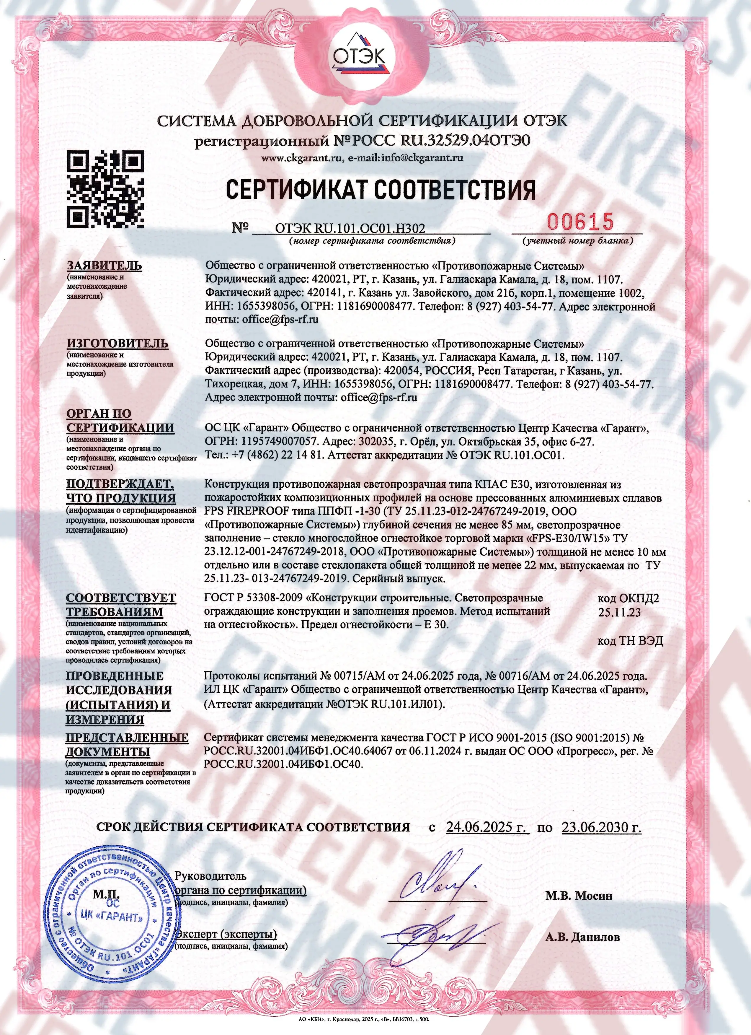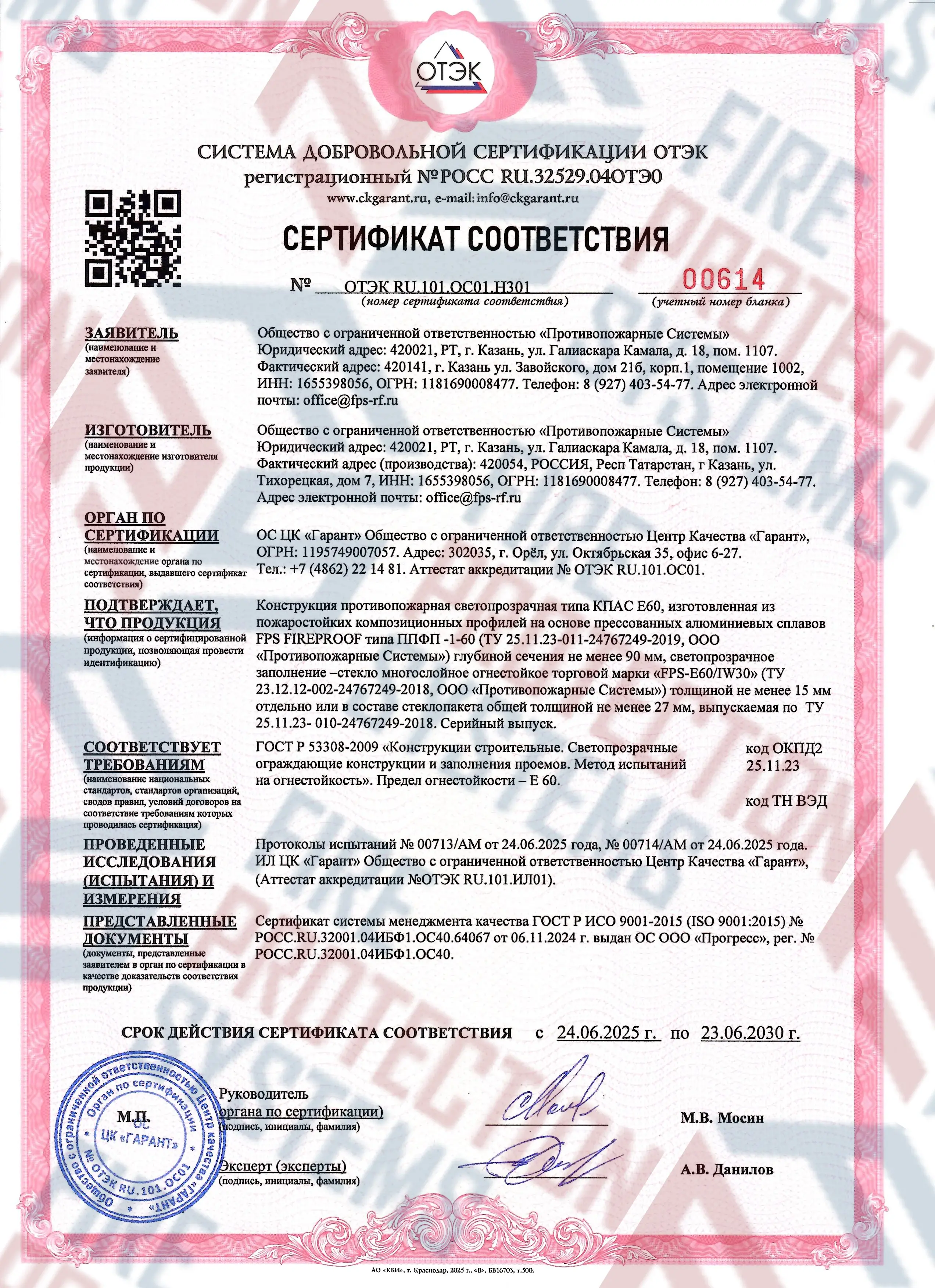Производство противопожарных светопрозрачных конструкций в Березниках от завода «Fire Protection Systems» включает несколько ключевых особенностей: